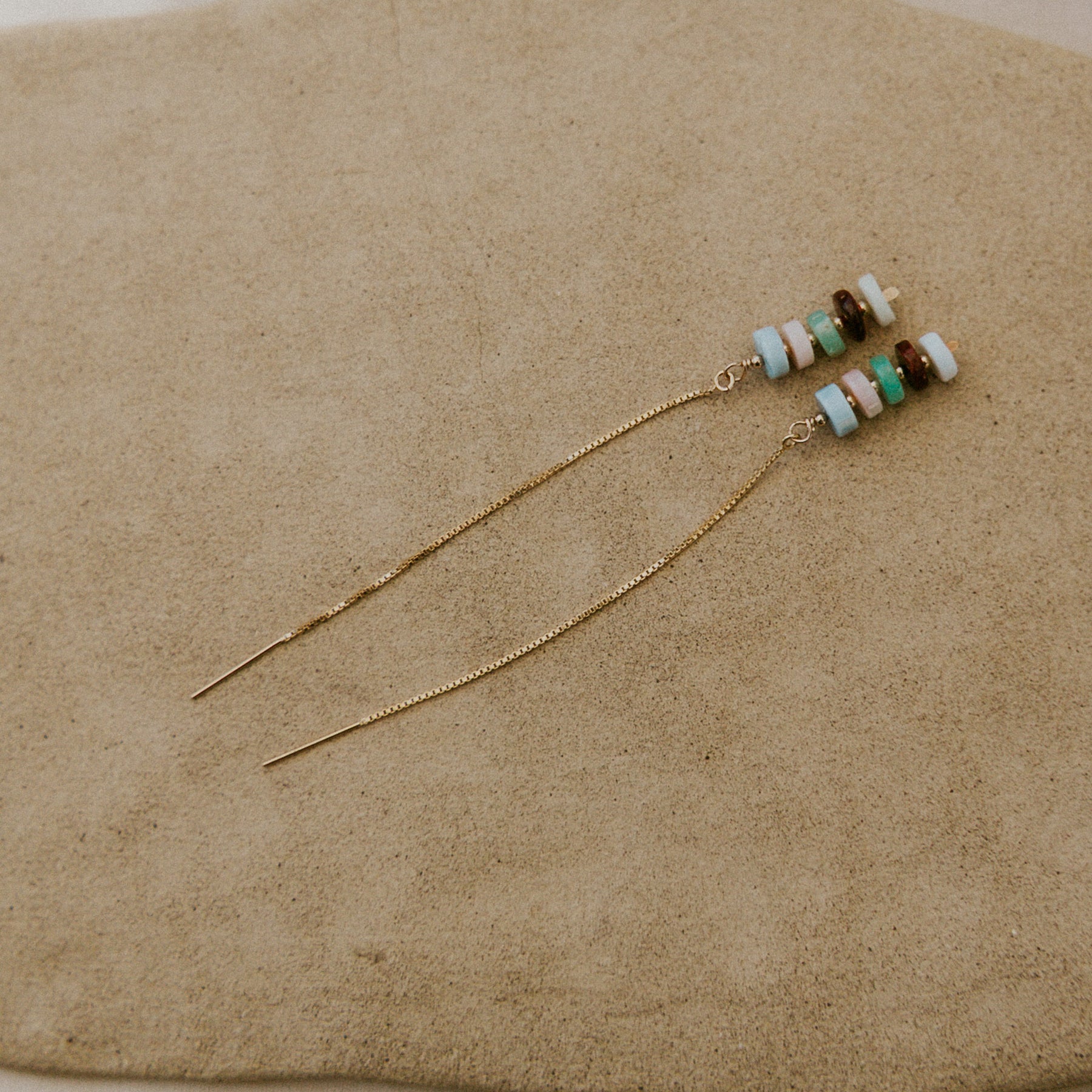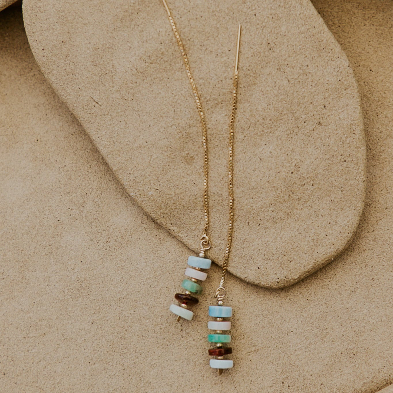 Delicate yet bold in their own right, the Caribbean Dream Threaders feature glowing multi-color opal beads that sway with your every move. Handcrafted in 14k gold-filled or sterling silver, these earrings are open, adjustable, and as effortless as a sea breeze. A go-to choice when you want just a touch of coastal color.