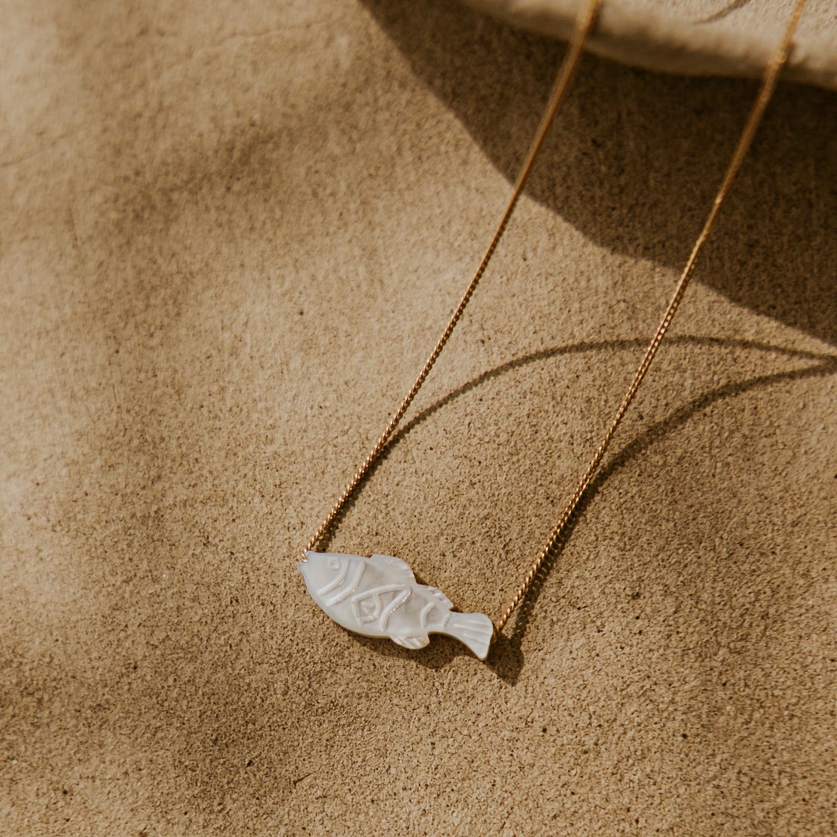 A nod to the tranquil life beneath the waves, the Makai Necklace features a hand-carved mother of pearl fish gliding freely along an 18 inch chain. Crafted in 14k gold-filled, this minimalist piece channels the peaceful energy of the sea. “Makai” means “toward the sea” in Hawaiian, and this piece is a gentle reminder to go with the flow.