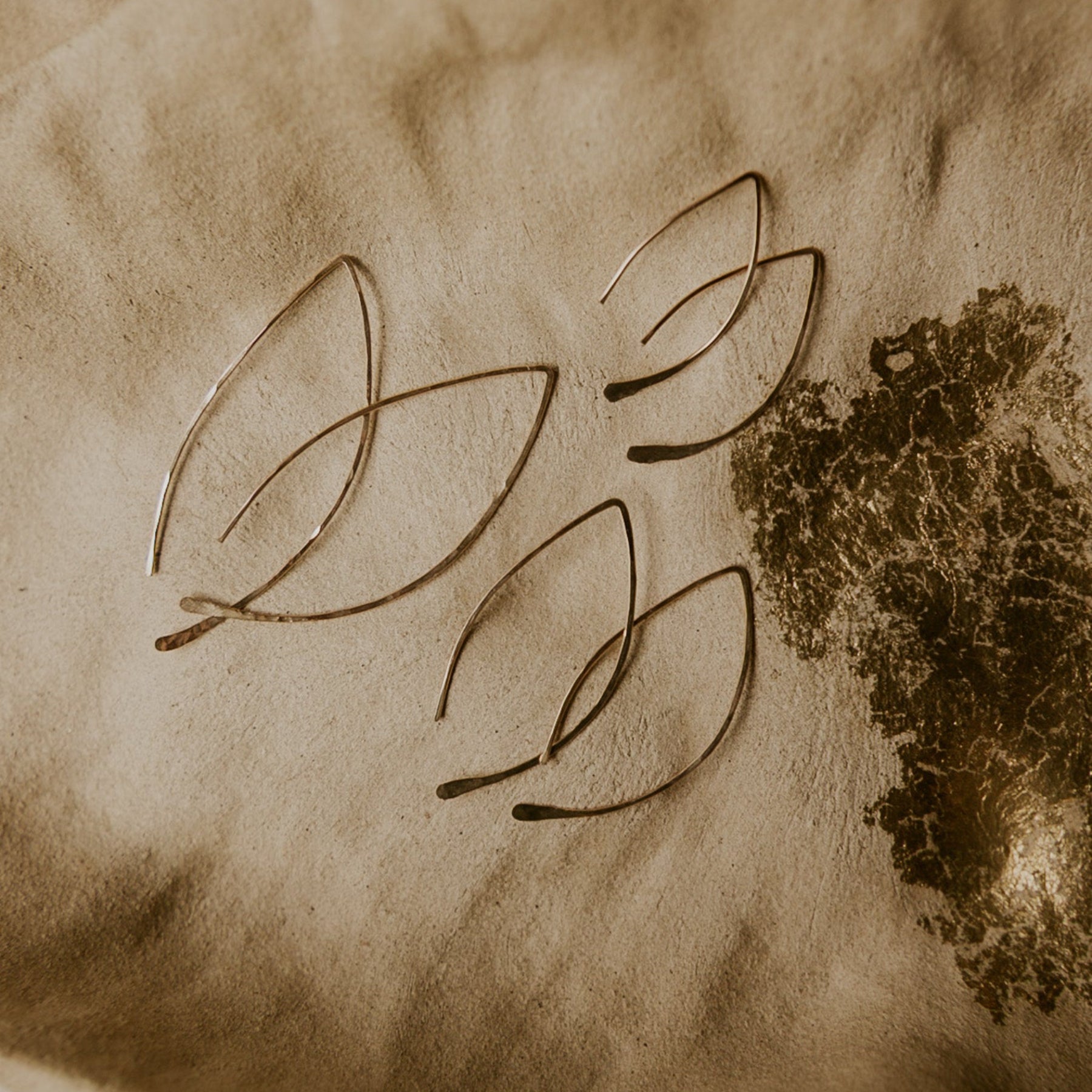Teressa Lane Jewelry delicate gold leaf threader earrings worn on woman’s ear