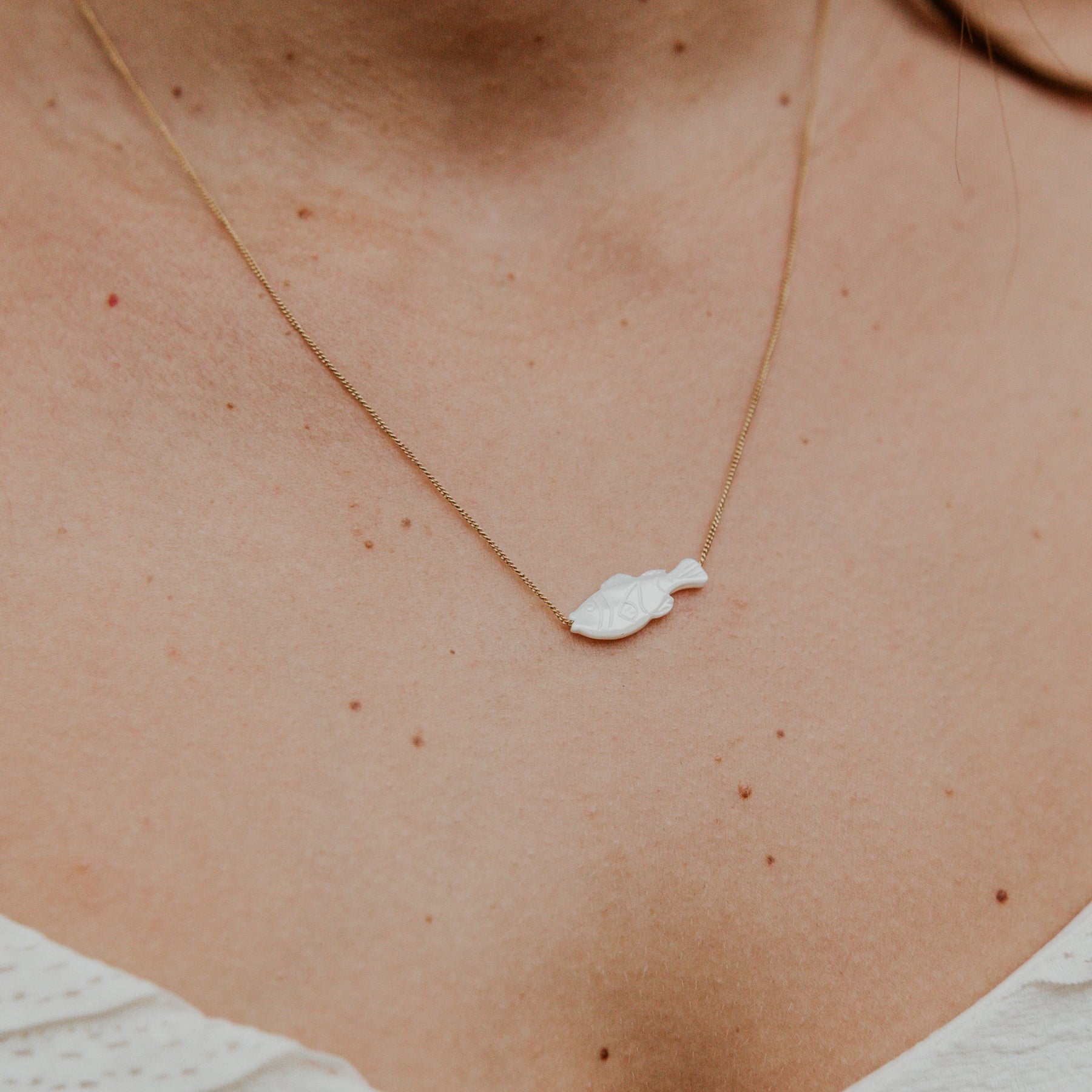 A nod to the tranquil life beneath the waves, the Makai Necklace features a hand-carved mother of pearl fish gliding freely along an 18 inch chain. Crafted in 14k gold-filled, this minimalist piece channels the peaceful energy of the sea. “Makai” means “toward the sea” in Hawaiian, and this piece is a gentle reminder to go with the flow.